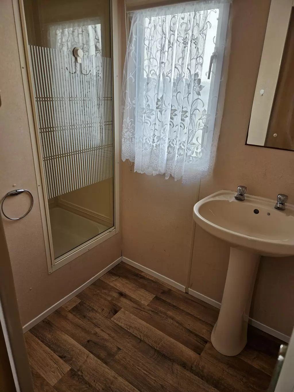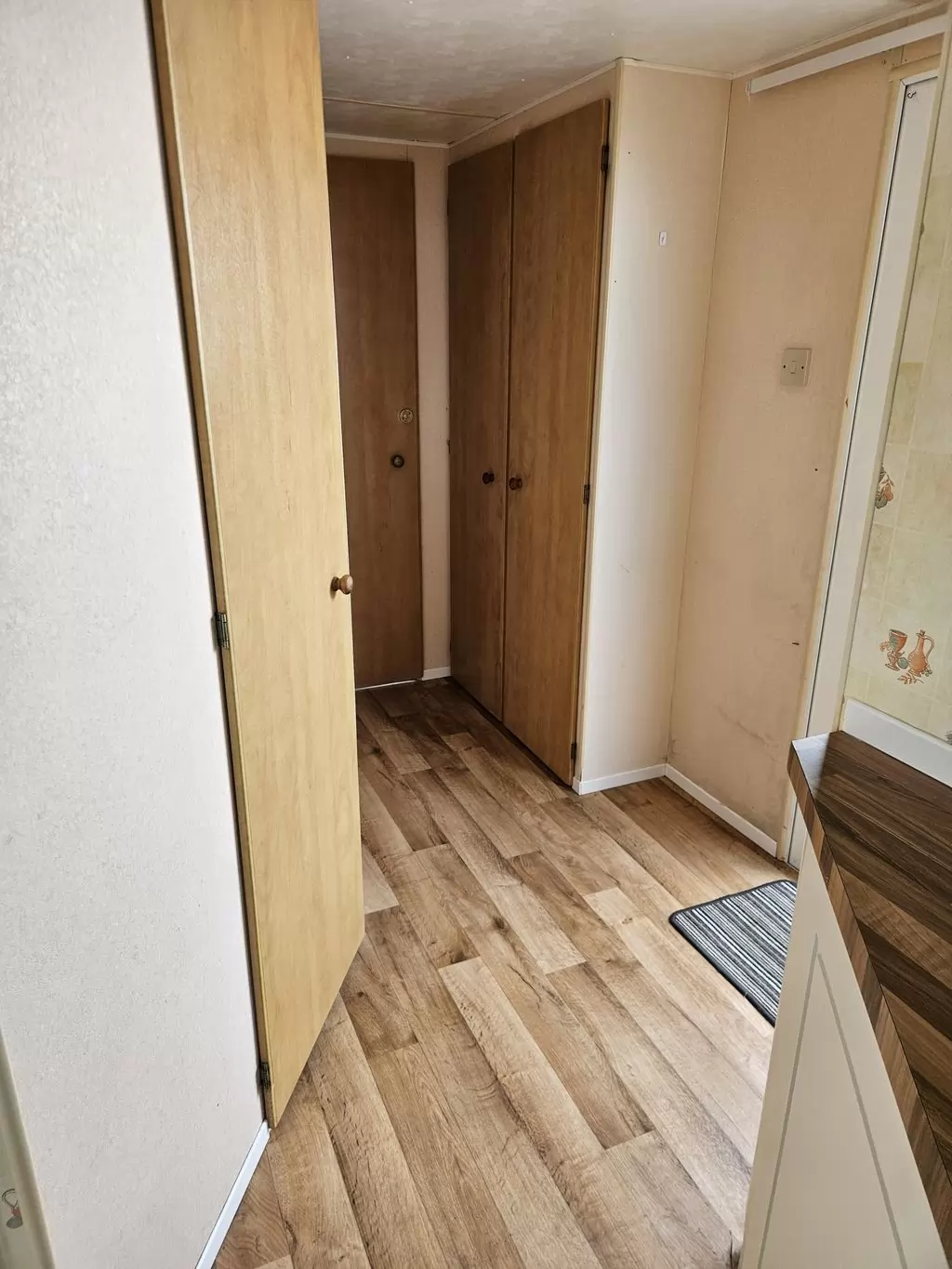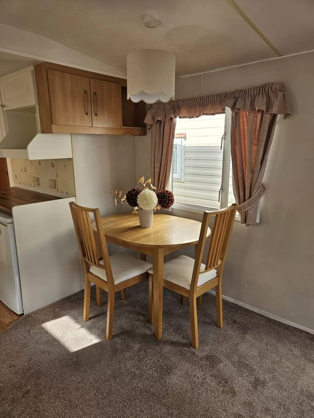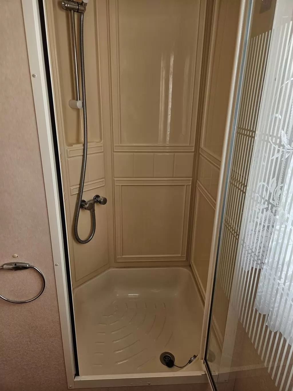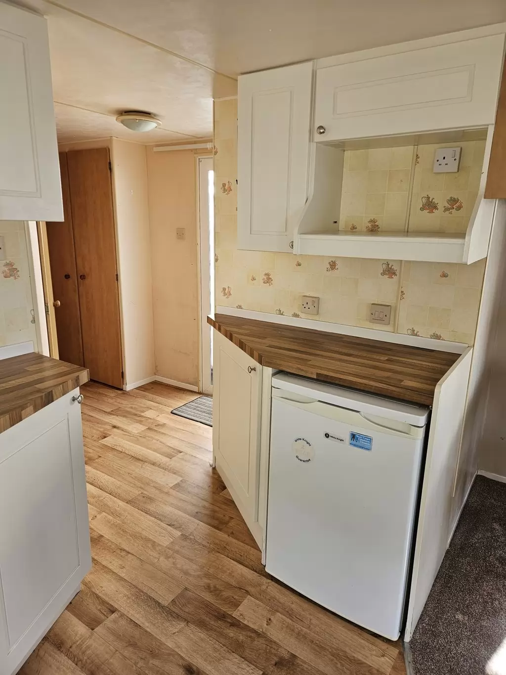 Extra breites, SCHÖNES, voll ausgestattetes Mobilheim 10,9 x 3,7 m mit zwei Eingängen, Satteldach, doppelten (isolierten) Fenstern und Türen – Dithermie. Geräumiges Wohnzimmer, Essbereich, schöne U-förmige Küche inklusive Geräten, Schlafzimmer (Doppelbett), Zimmer (2 Betten), Badezimmer mit Dusche, WC. Elektrischer Kamin, Gas-Wasser-Heizung. Stauraum außerhalb der Rückseite des Mobilheims. Erhöhte Decke im gesamten Mobilheim!