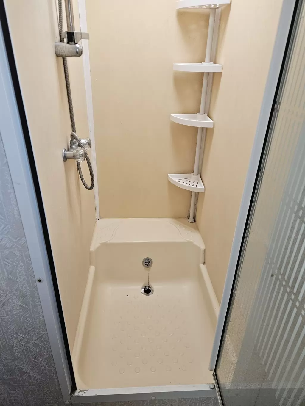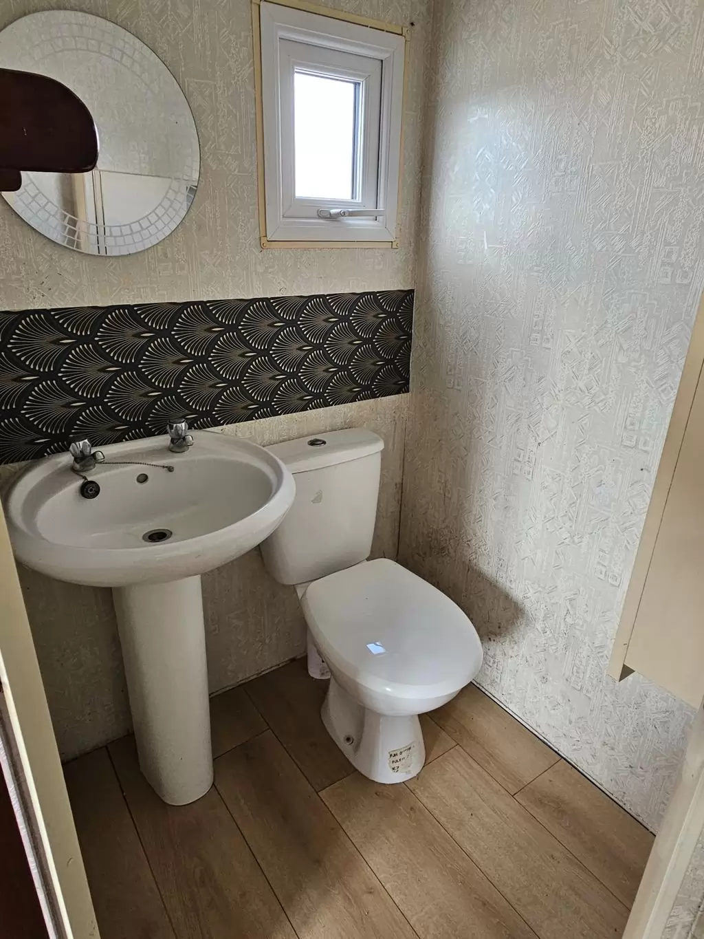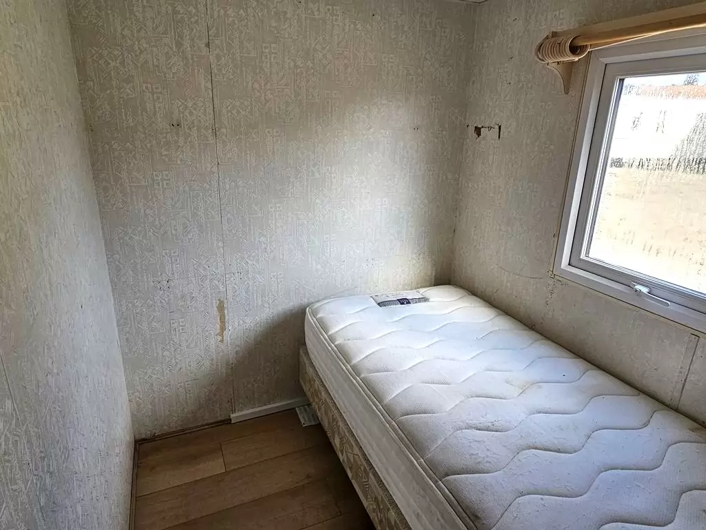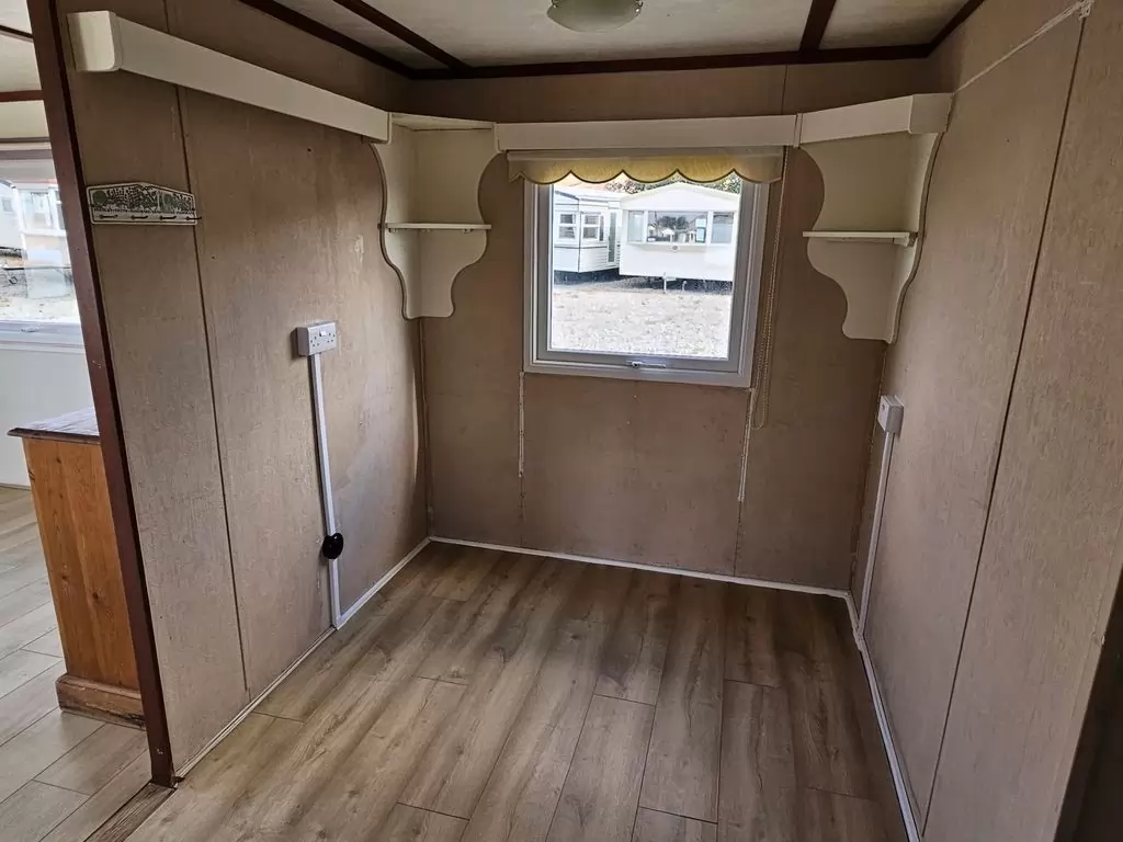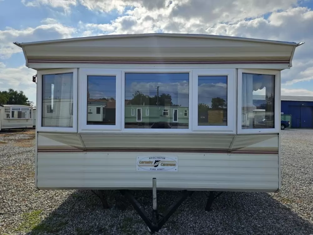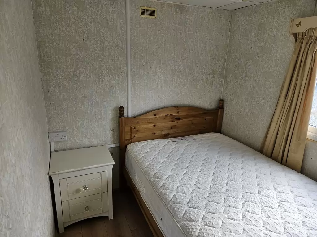 Extra breites, unmöbliertes Mobilheim 11,3 x 3,7 m mit zwei Eingängen, DOPPELTE (isolierte) FENSTER UND TÜREN – Dithermie. Wohnzimmer, Essbereich, U-förmige Küche inkl. Geräte, Schlafzimmer (Doppelbett), Zimmer (Bett), Zimmer, Badezimmer mit Dusche, Toilette mit Waschbecken. Gas-Wasserheizung.
