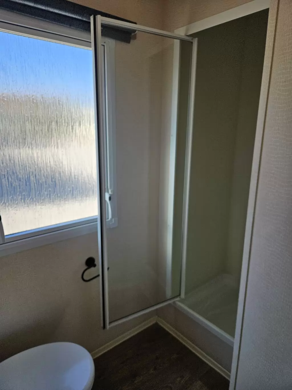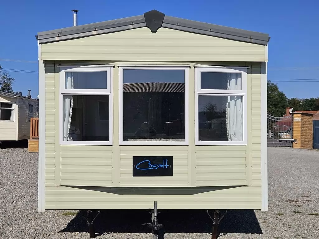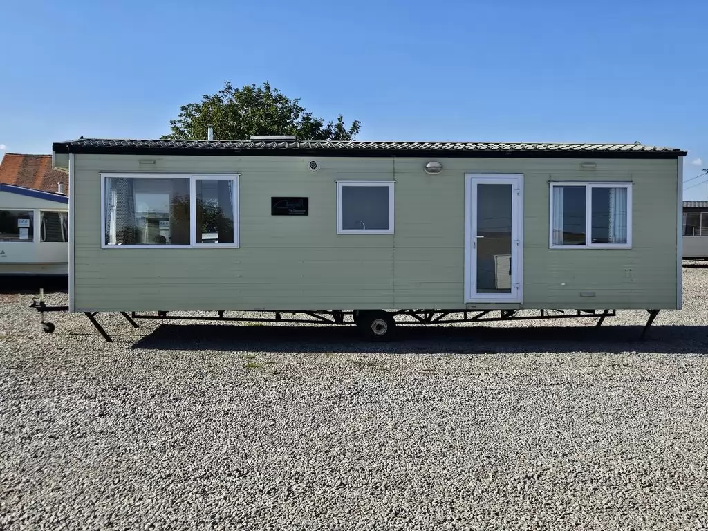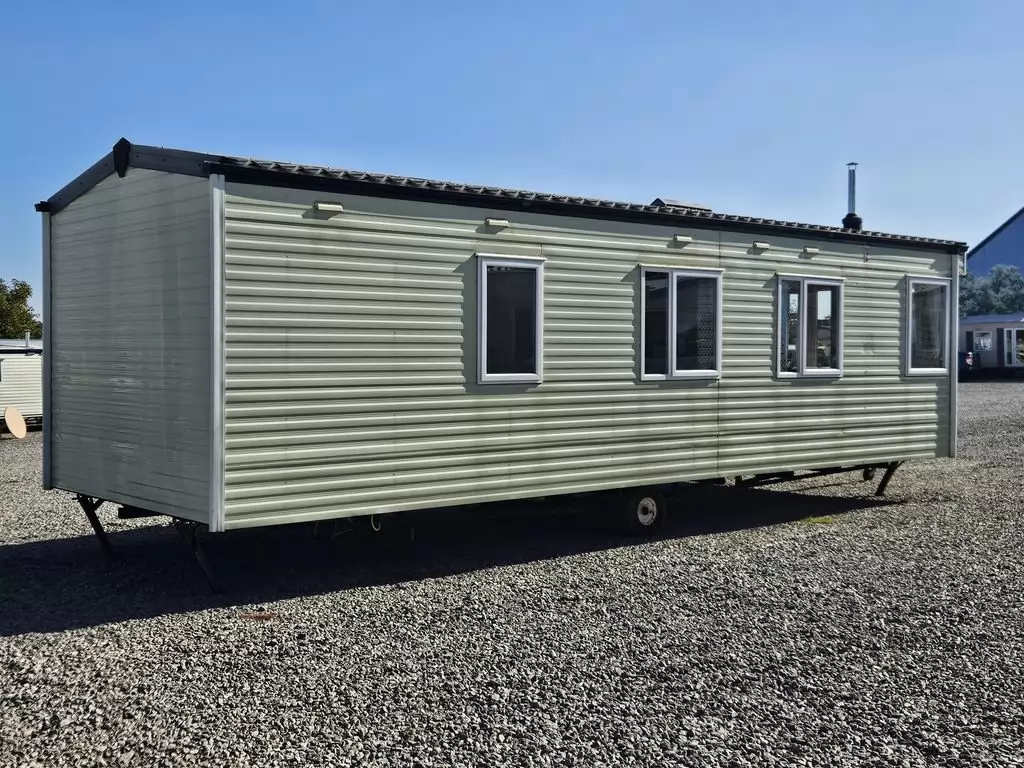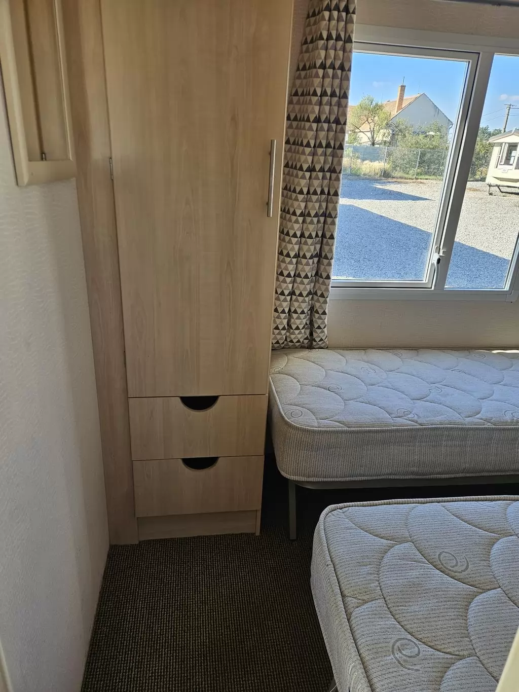 SCHÖNES, voll ausgestattetes Mobilheim 9,2 x 3,1 m mit einem Eingang, Satteldach mit Dachziegelimitat, doppelten (isolierten) Fenstern und Türen – Dithermie. Wohnzimmer (Schlafsofa), Küche inkl. Geräten, Schlafzimmer (Doppelbett), Zimmer (2 Betten), Badezimmer mit Dusche + WC. Gaskamin, Gas-Wasserheizung. Erhöhte Decke im gesamten Mobilheim!!