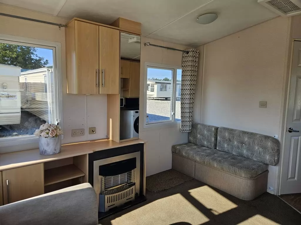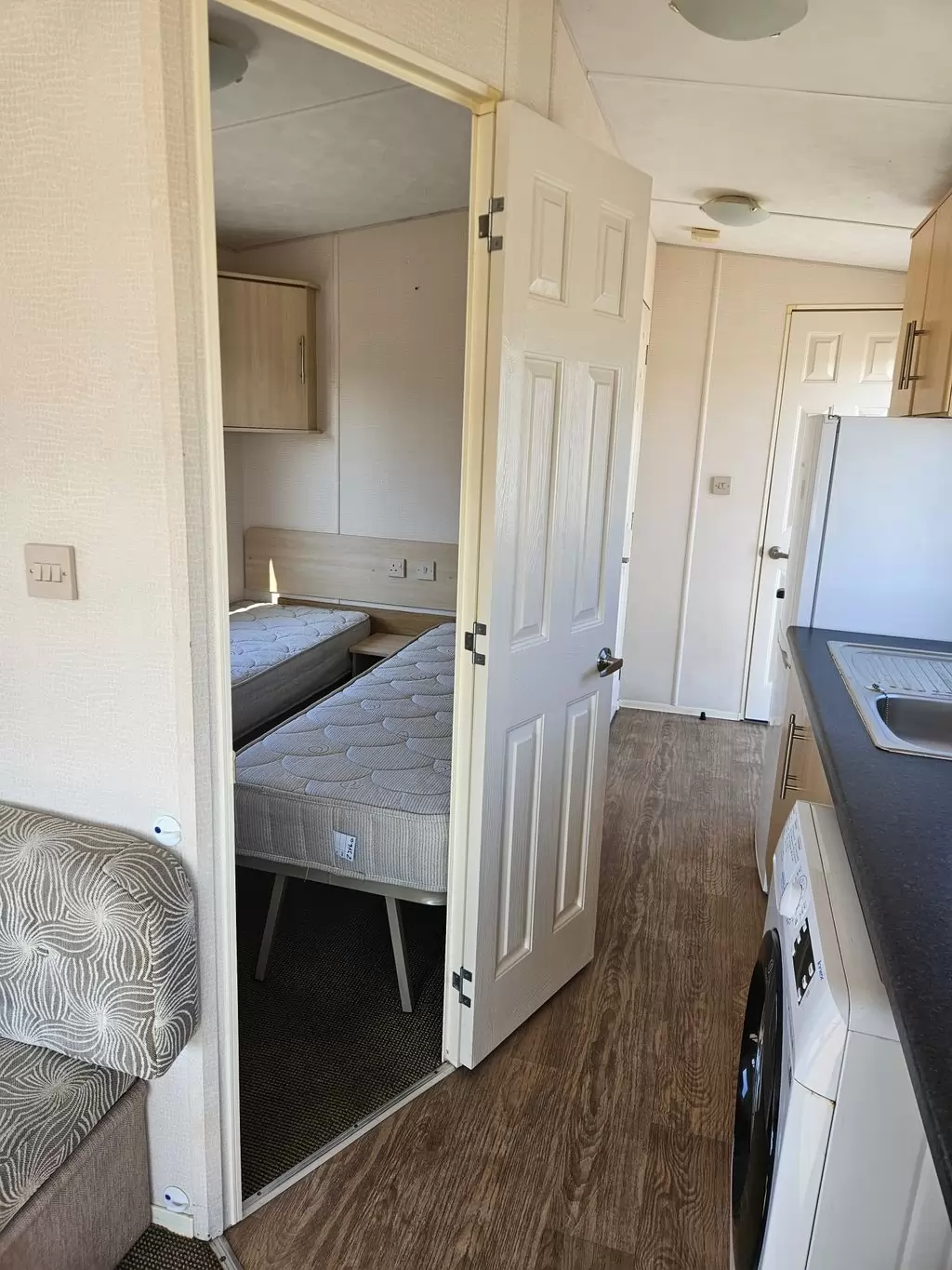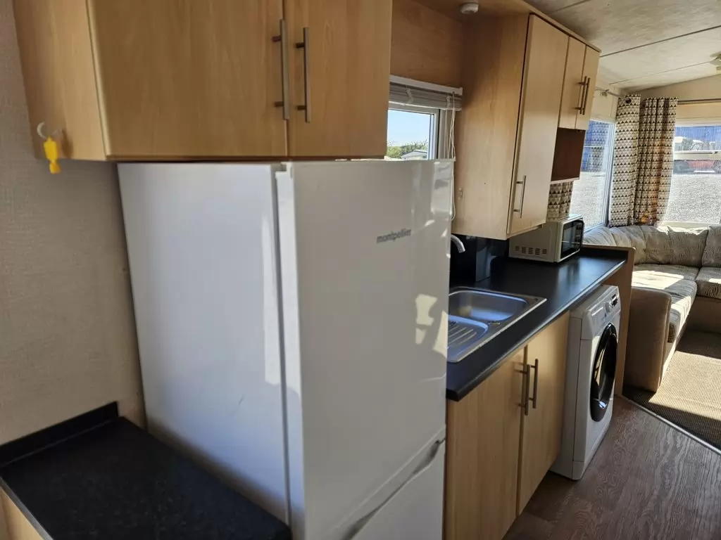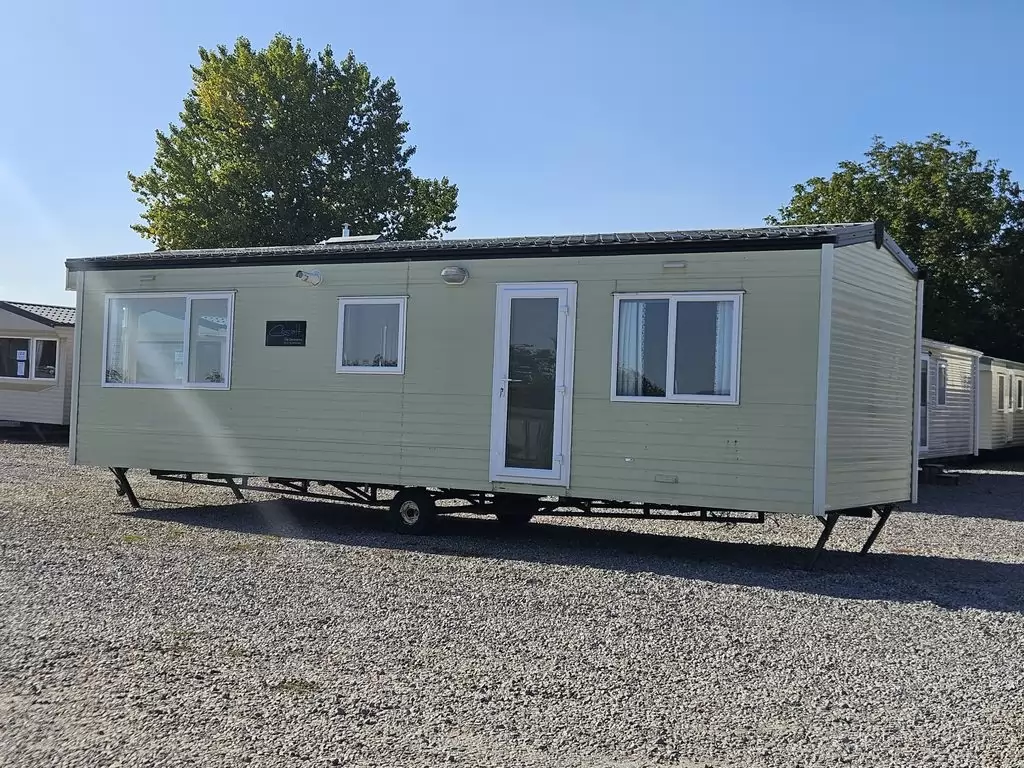SCHÖNES, voll ausgestattetes Mobilheim 9,2 x 3,1 m mit einem Eingang, Satteldach mit Dachziegelimitat, doppelten (isolierten) Fenstern und Türen – Dithermie. Wohnzimmer (Schlafsofa), Küche inkl. Geräten, Schlafzimmer (Doppelbett), Zimmer (2 Betten), Badezimmer mit Dusche + WC. Gaskamin, Gas-Wasserheizung. Erhöhte Decke im gesamten Mobilheim!!