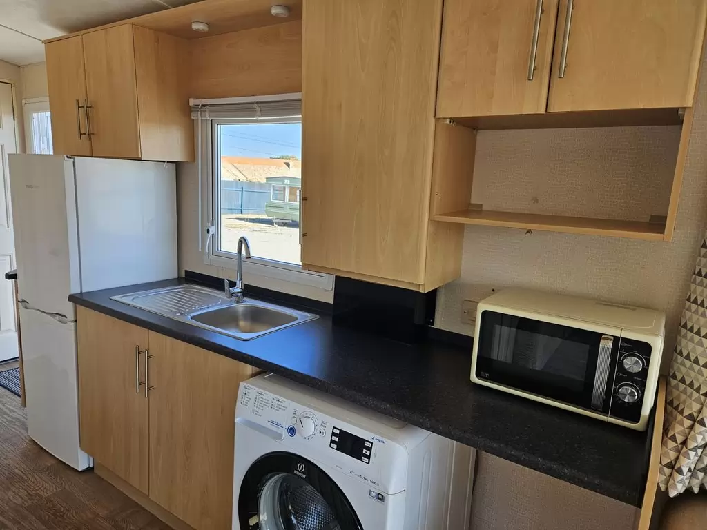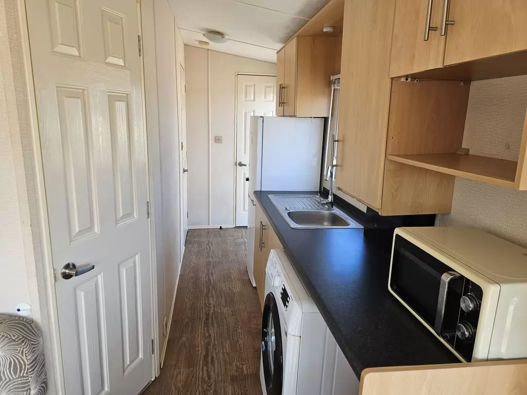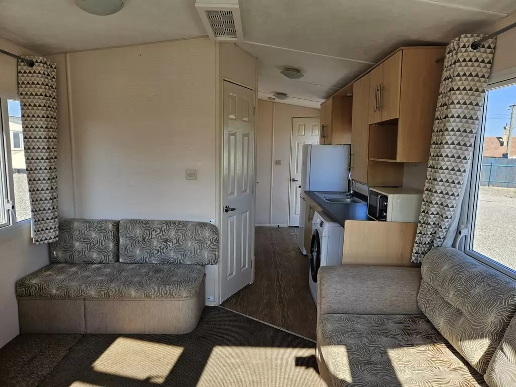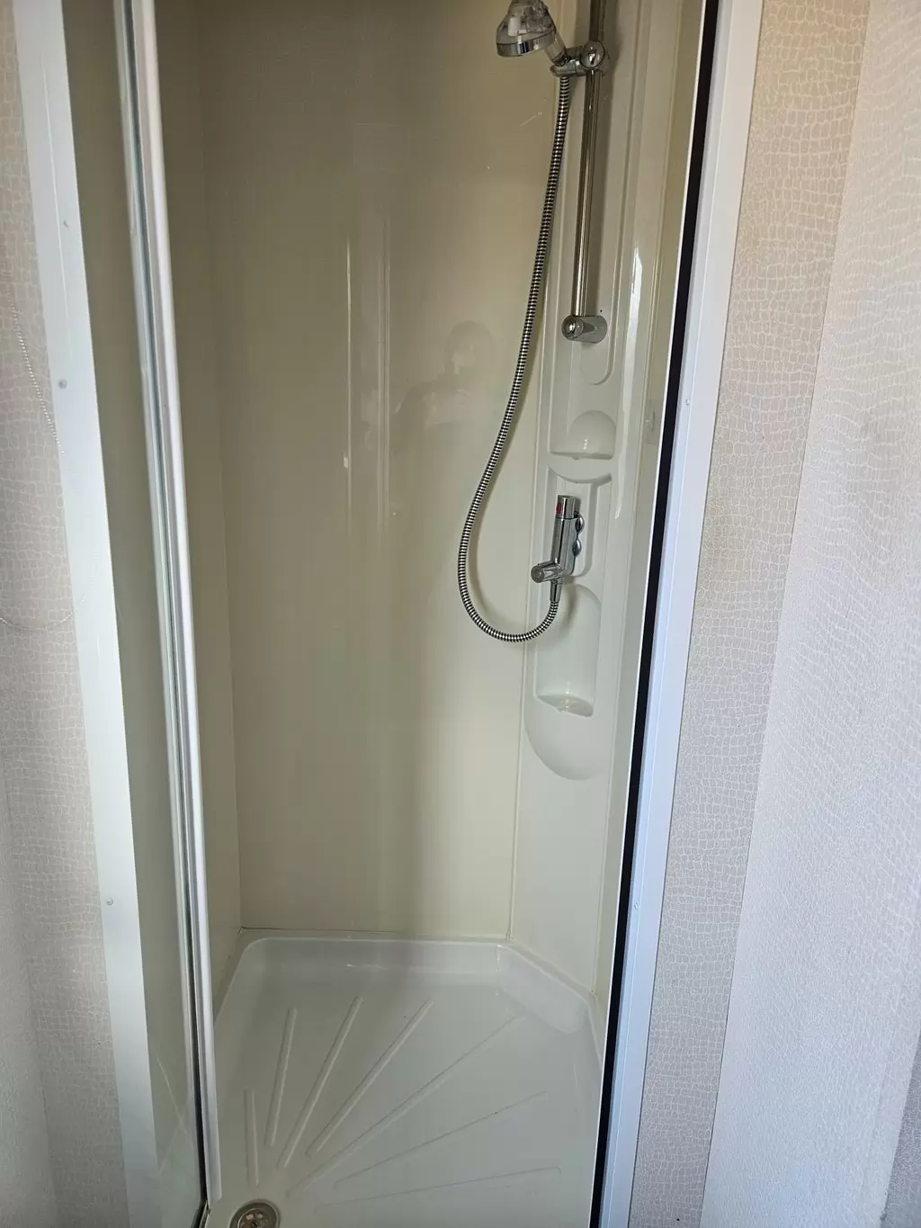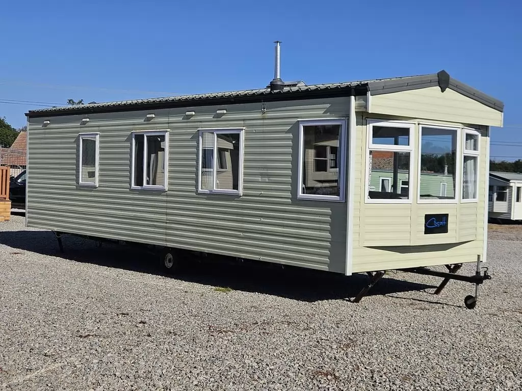 SCHÖNES, voll ausgestattetes Mobilheim 9,2 x 3,1 m mit einem Eingang, Satteldach mit Dachziegelimitat, doppelten (isolierten) Fenstern und Türen – Dithermie. Wohnzimmer (Schlafsofa), Küche inkl. Geräten, Schlafzimmer (Doppelbett), Zimmer (2 Betten), Badezimmer mit Dusche + WC. Gaskamin, Gas-Wasserheizung. Erhöhte Decke im gesamten Mobilheim!!