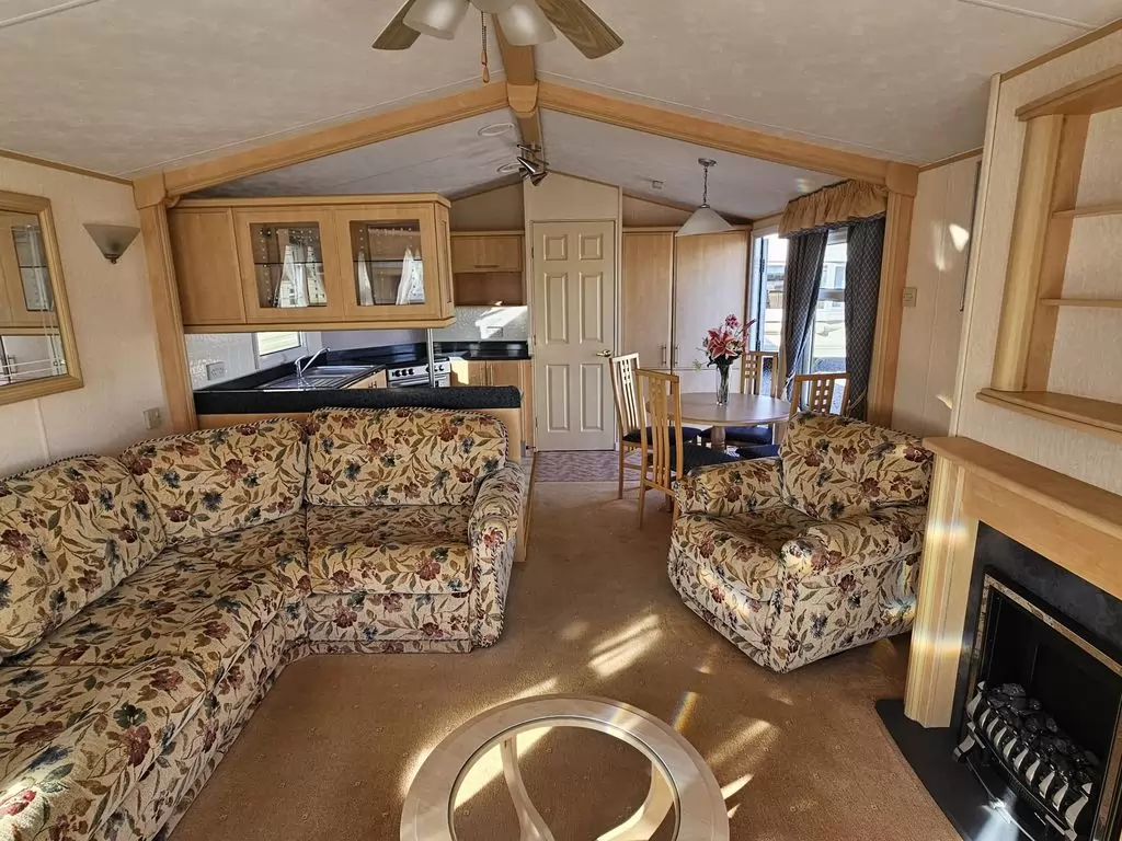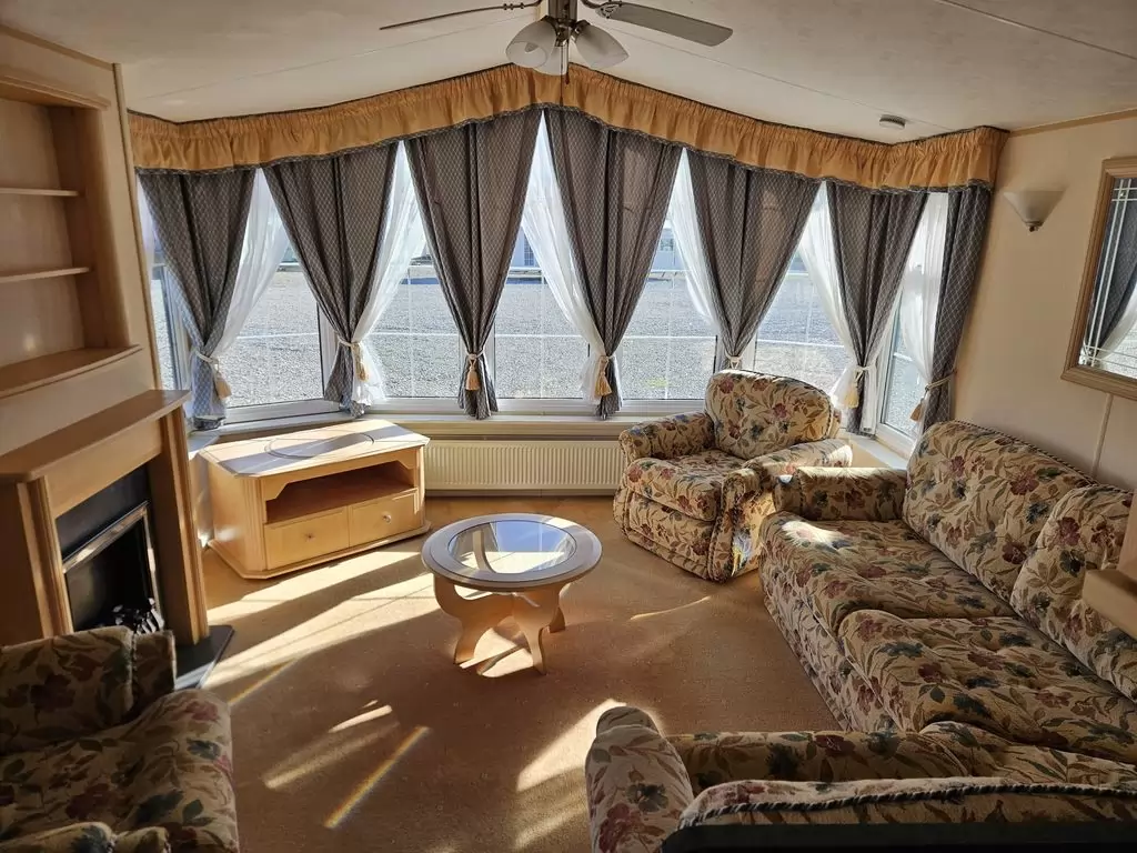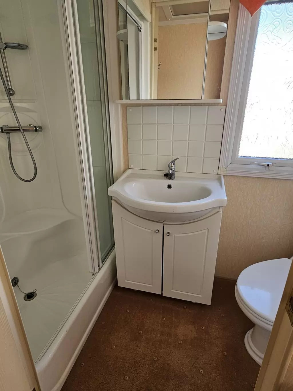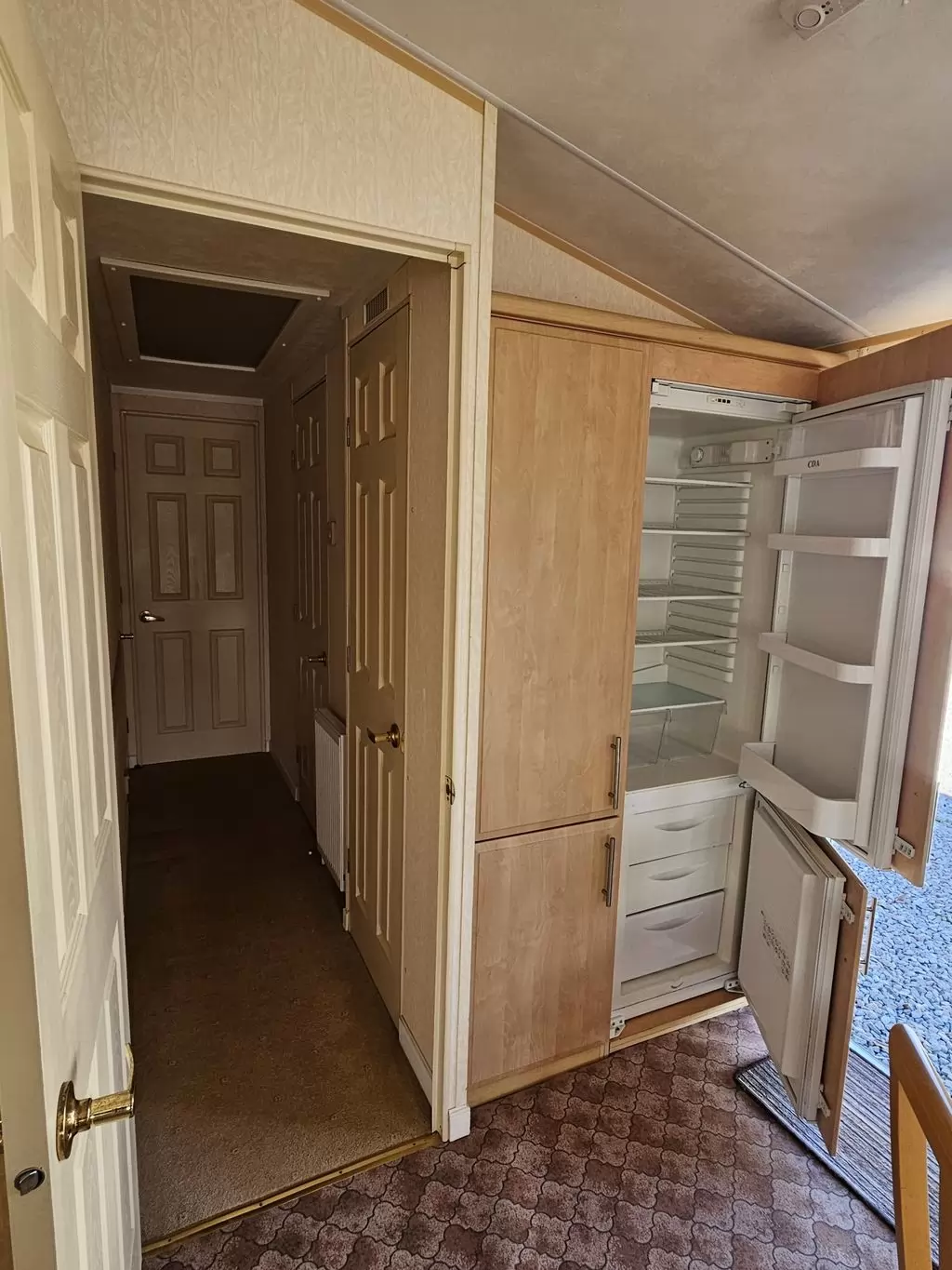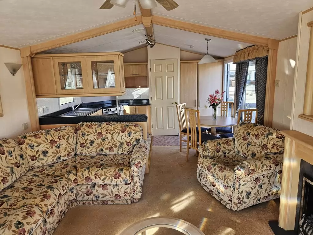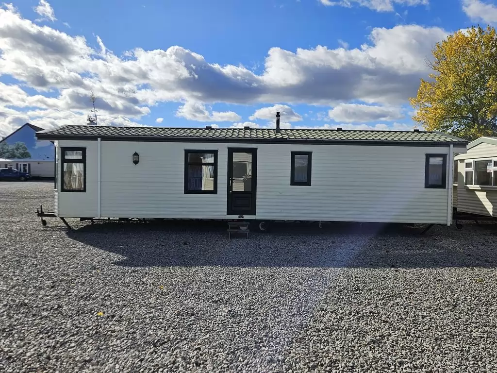 Extra breites, schönes, sauberes, voll ausgestattetes Mobilheim 11,8 x 3,7 m mit einem Eingang, HAMMERDACH, DOPPELTE (isolierte) FENSTER UND TÜREN – Dithermie, ZENTRALHEIZUNG – Gaskessel + Heizkörper in allen Zimmern + elektrischer Kamin im Wohnzimmer. Wohnzimmer (Schlafsofa), Essbereich, U-förmige Küche inkl. Geräte, Schlafzimmer (Doppelbett) + Toilette mit Waschbecken, Zimmer (2 Betten), Badezimmer mit Dusche + Toilette. Erhöhte Decke im gesamten Mobilheim!!