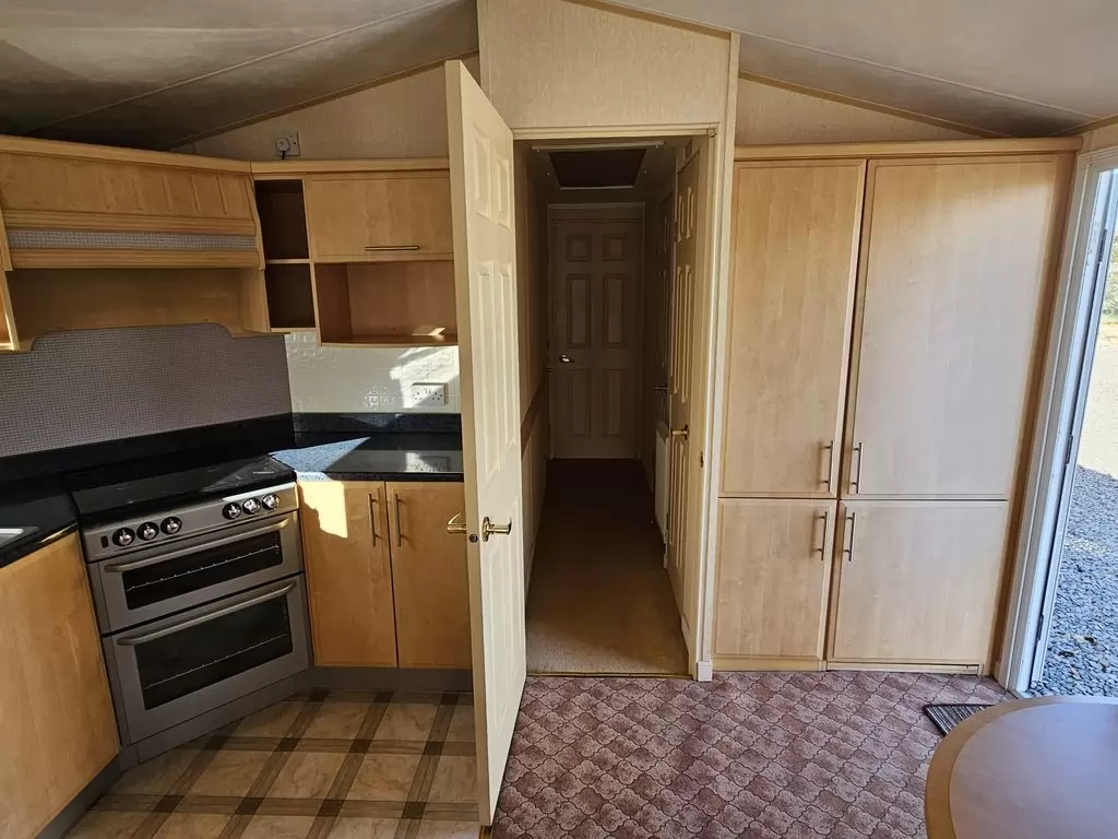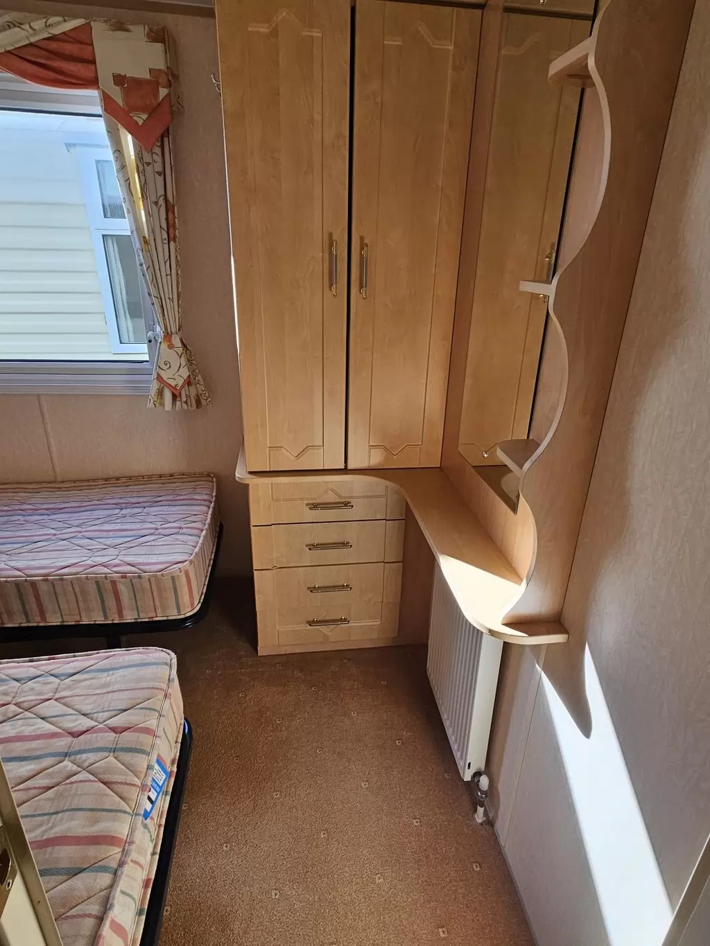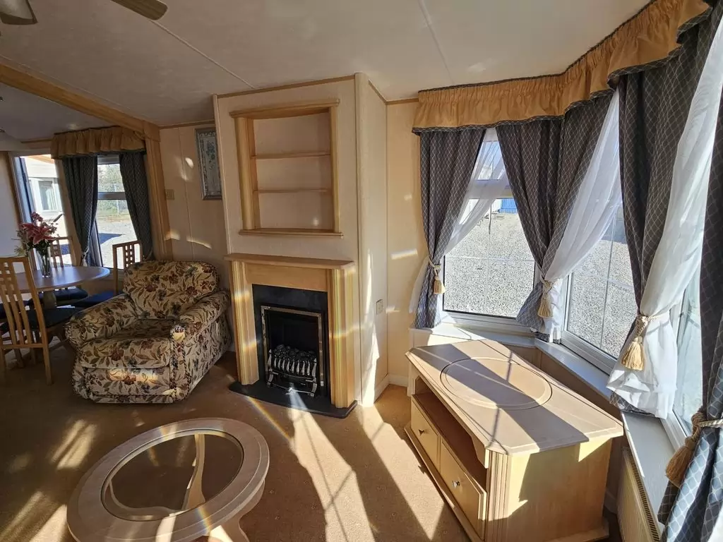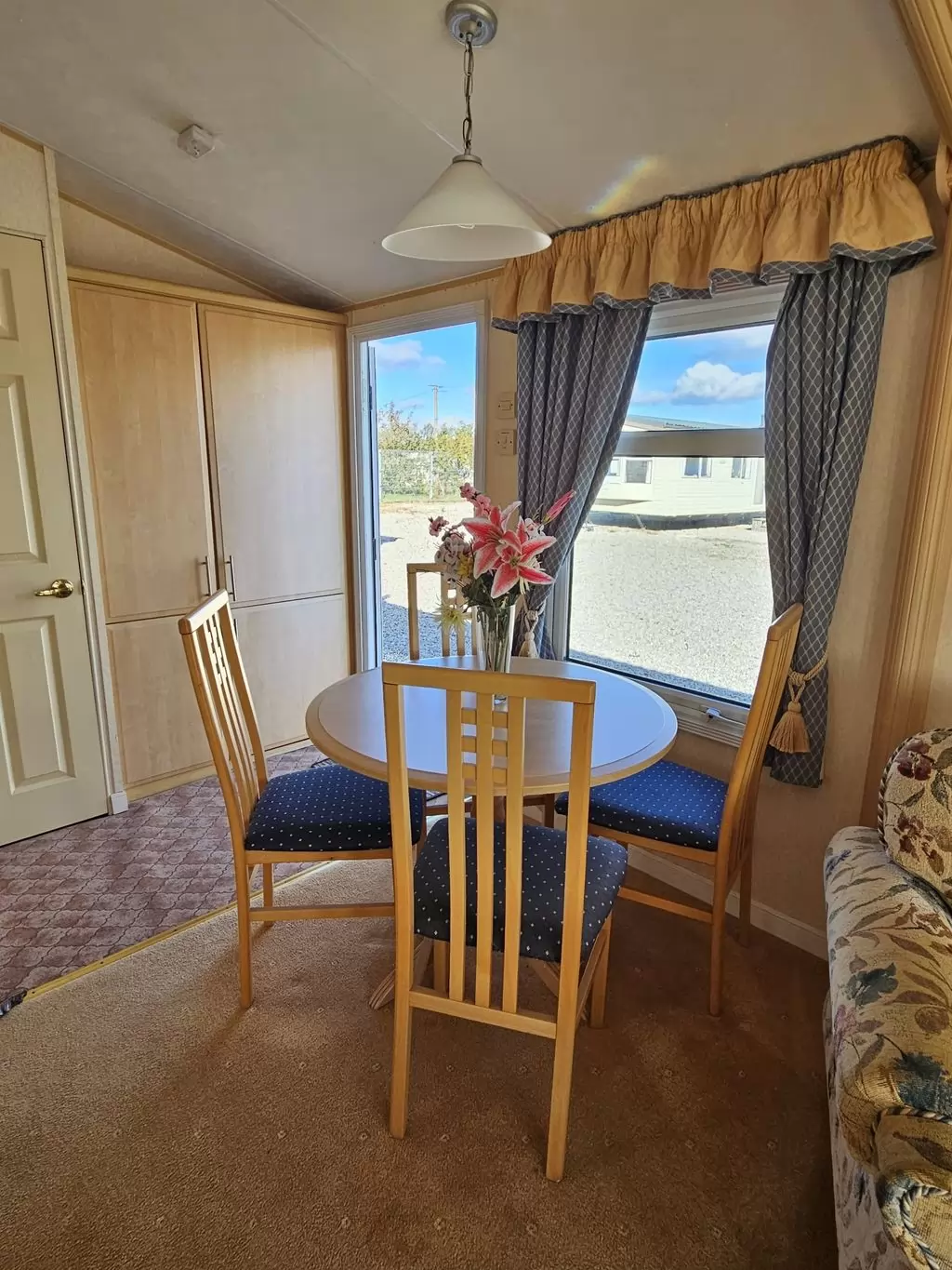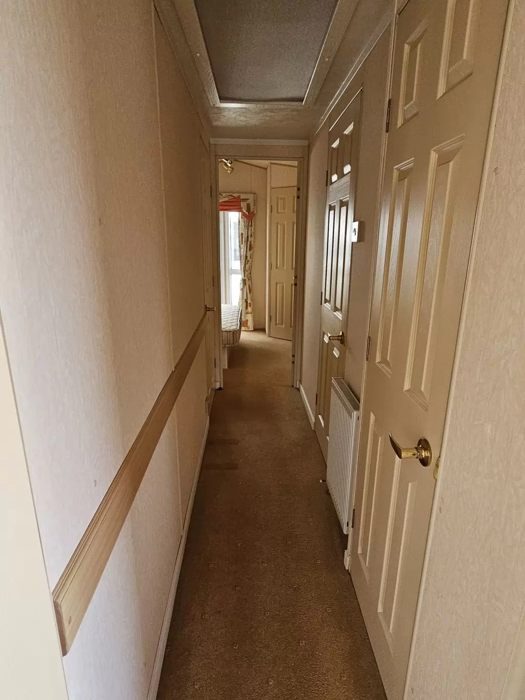 Extra breites, schönes, sauberes, voll ausgestattetes Mobilheim 11,8 x 3,7 m mit einem Eingang, HAMMERDACH, DOPPELTE (isolierte) FENSTER UND TÜREN – Dithermie, ZENTRALHEIZUNG – Gaskessel + Heizkörper in allen Zimmern + elektrischer Kamin im Wohnzimmer. Wohnzimmer (Schlafsofa), Essbereich, U-förmige Küche inkl. Geräte, Schlafzimmer (Doppelbett) + Toilette mit Waschbecken, Zimmer (2 Betten), Badezimmer mit Dusche + Toilette. Erhöhte Decke im gesamten Mobilheim!!