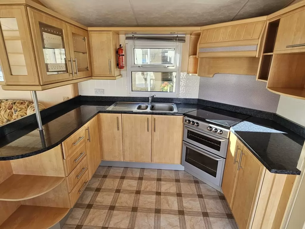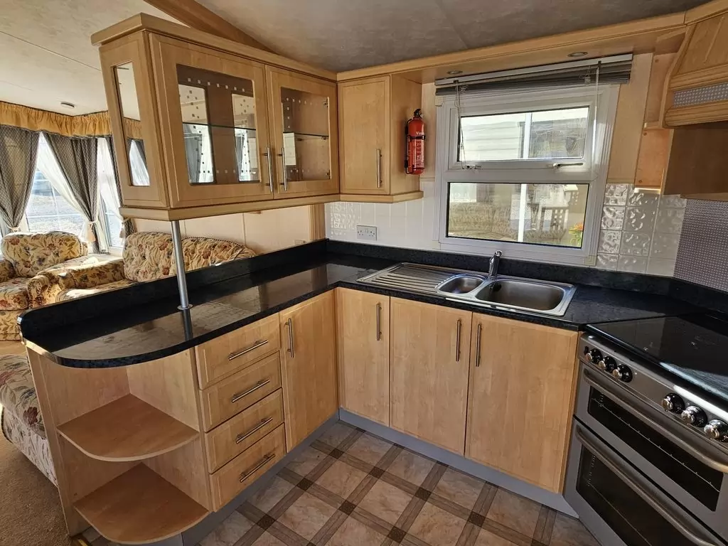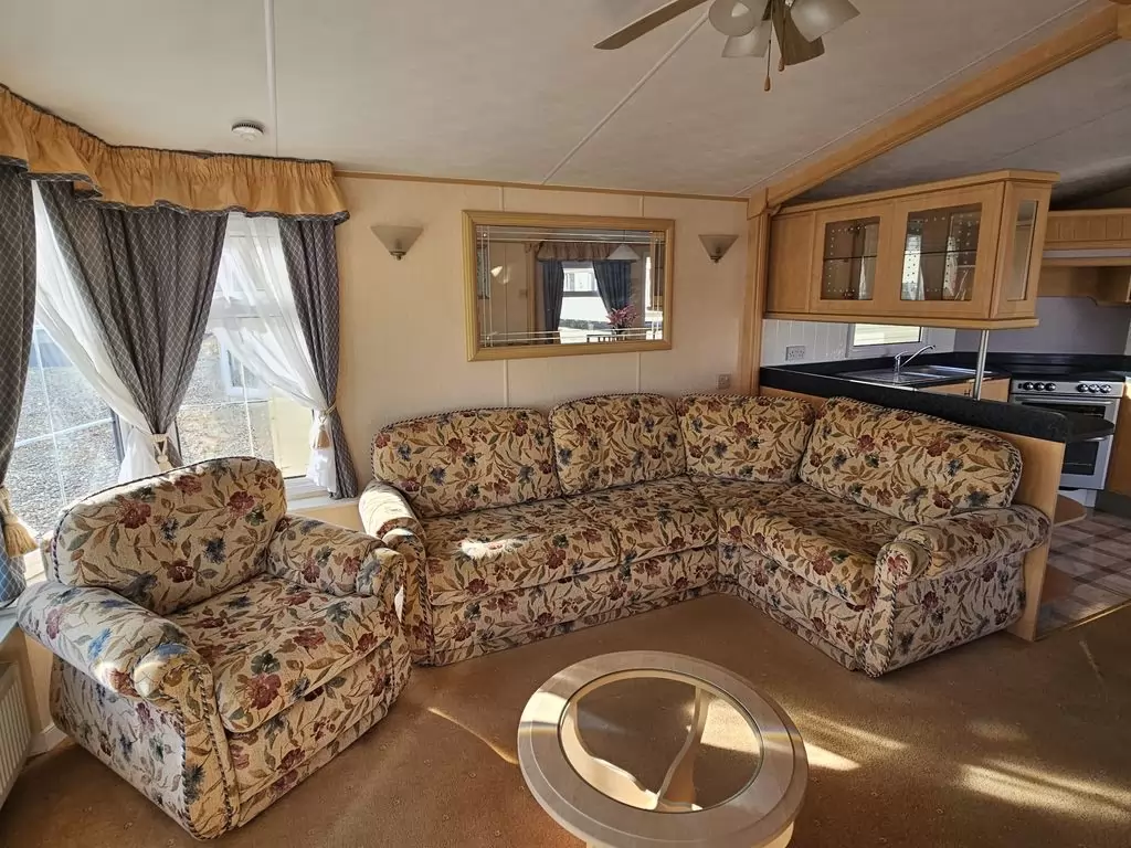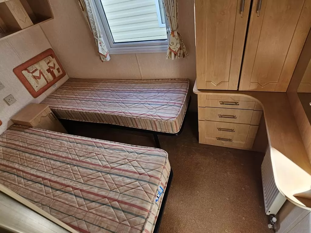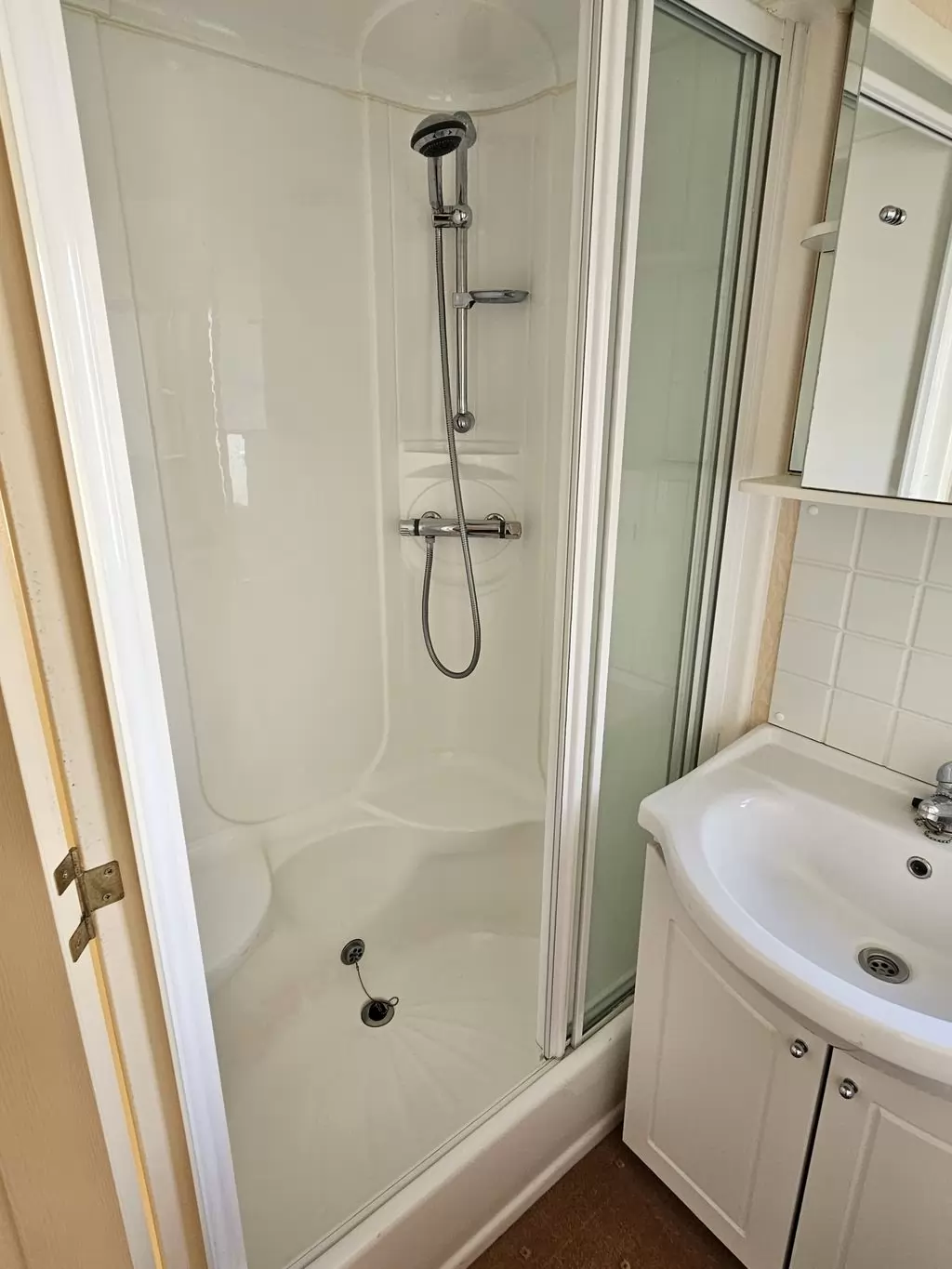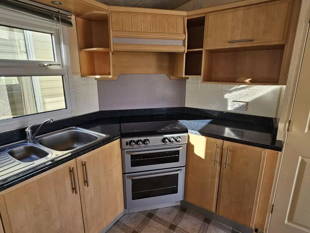 Extra breites, schönes, sauberes, voll ausgestattetes Mobilheim 11,8 x 3,7 m mit einem Eingang, HAMMERDACH, DOPPELTE (isolierte) FENSTER UND TÜREN – Dithermie, ZENTRALHEIZUNG – Gaskessel + Heizkörper in allen Zimmern + elektrischer Kamin im Wohnzimmer. Wohnzimmer (Schlafsofa), Essbereich, U-förmige Küche inkl. Geräte, Schlafzimmer (Doppelbett) + Toilette mit Waschbecken, Zimmer (2 Betten), Badezimmer mit Dusche + Toilette. Erhöhte Decke im gesamten Mobilheim!!