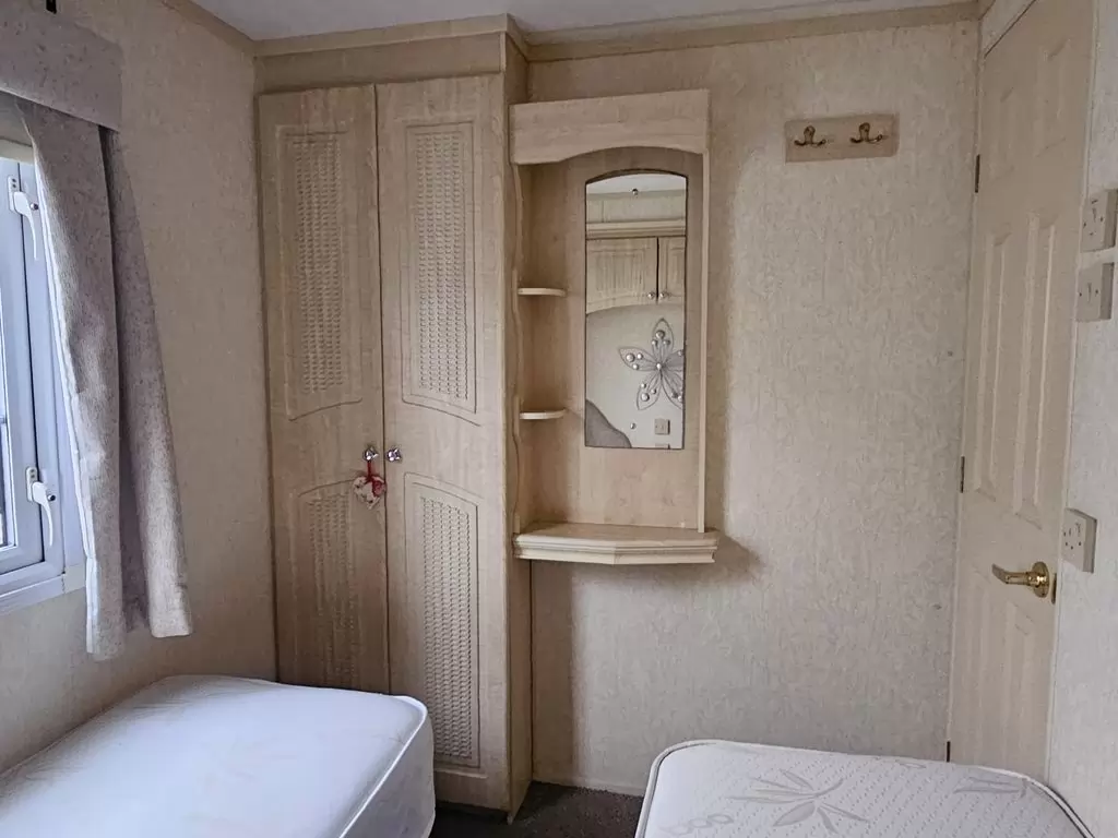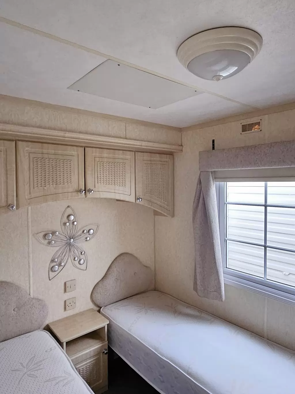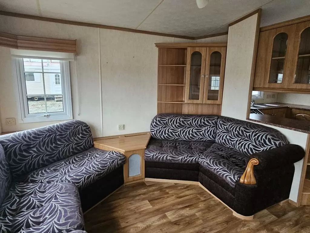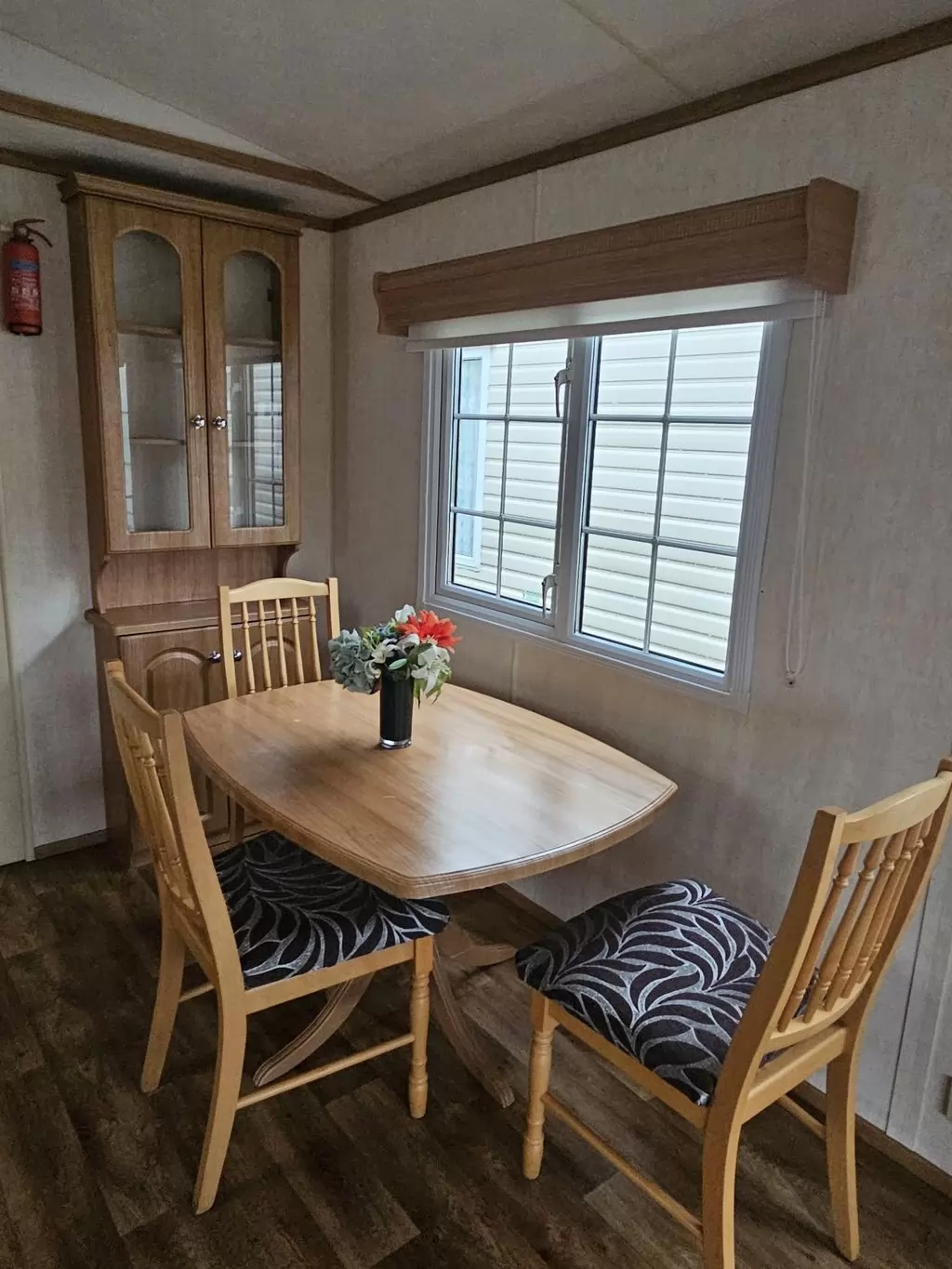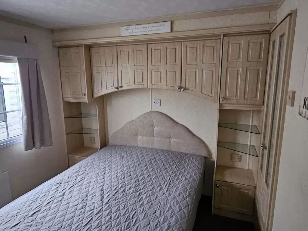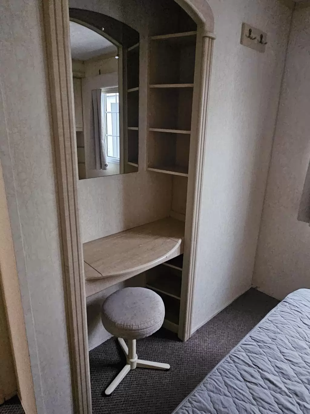Extra breites, wunderschönes, sauberes und komplett ausgestattetes Mobilheim (11 x 3,7 m) mit zwei Eingängen, Satteldach, doppelten (isolierten) Fenstern und Türen (Dämmung). Wohnzimmer (Schlafsofa), Essbereich, U-förmige Küche inklusive Geräten, Schlafzimmer (Doppelbett) mit Ankleidezimmer, Schlafzimmer (2 Betten), Badezimmer mit Dusche und WC. Gaskamin und elektrische Heizung in den Räumen, Gaswarmwasserbereitung. Hohe Decken im gesamten Mobilheim!