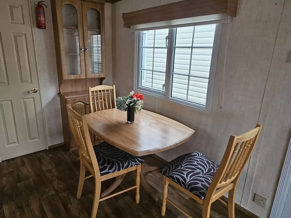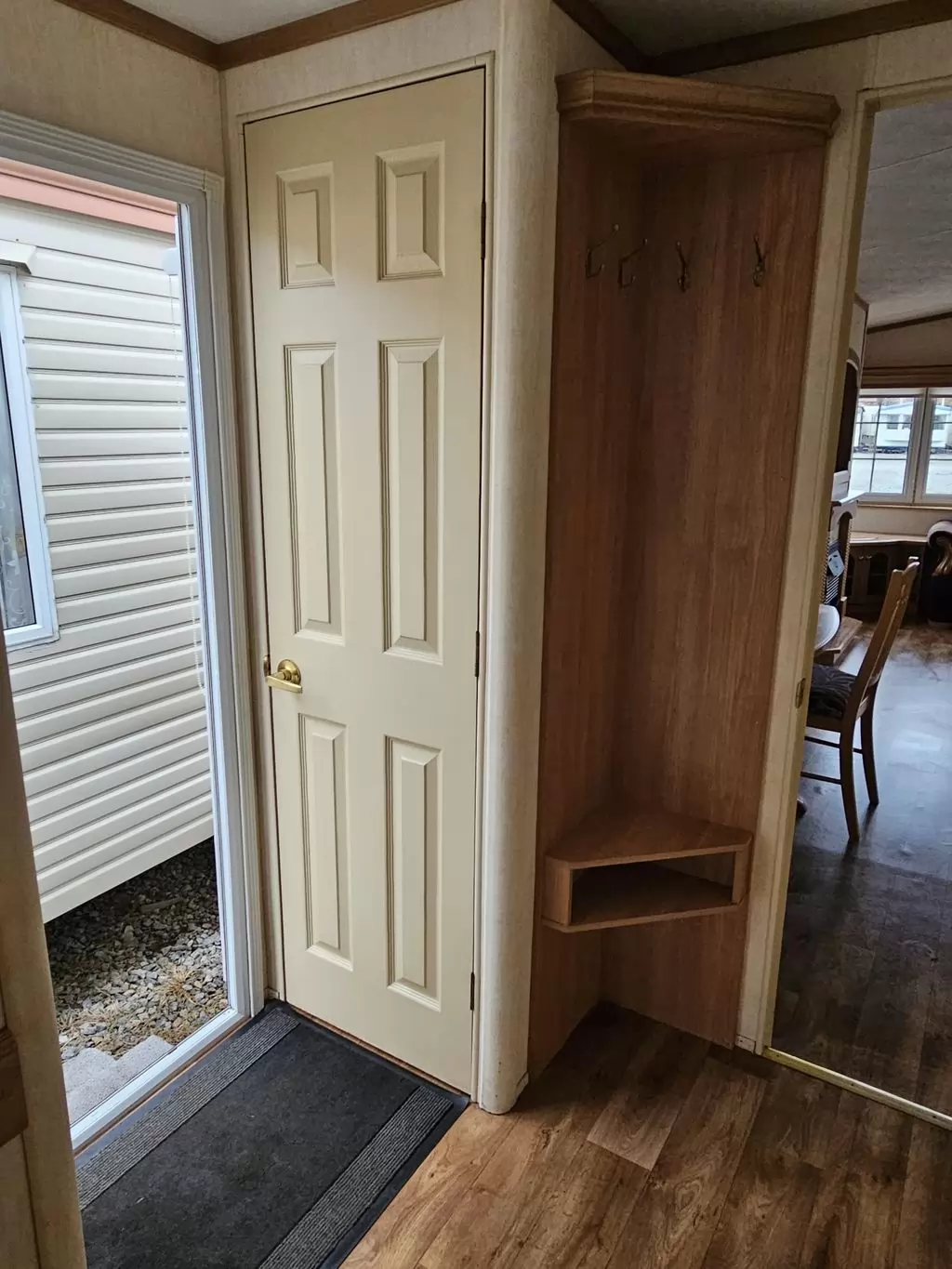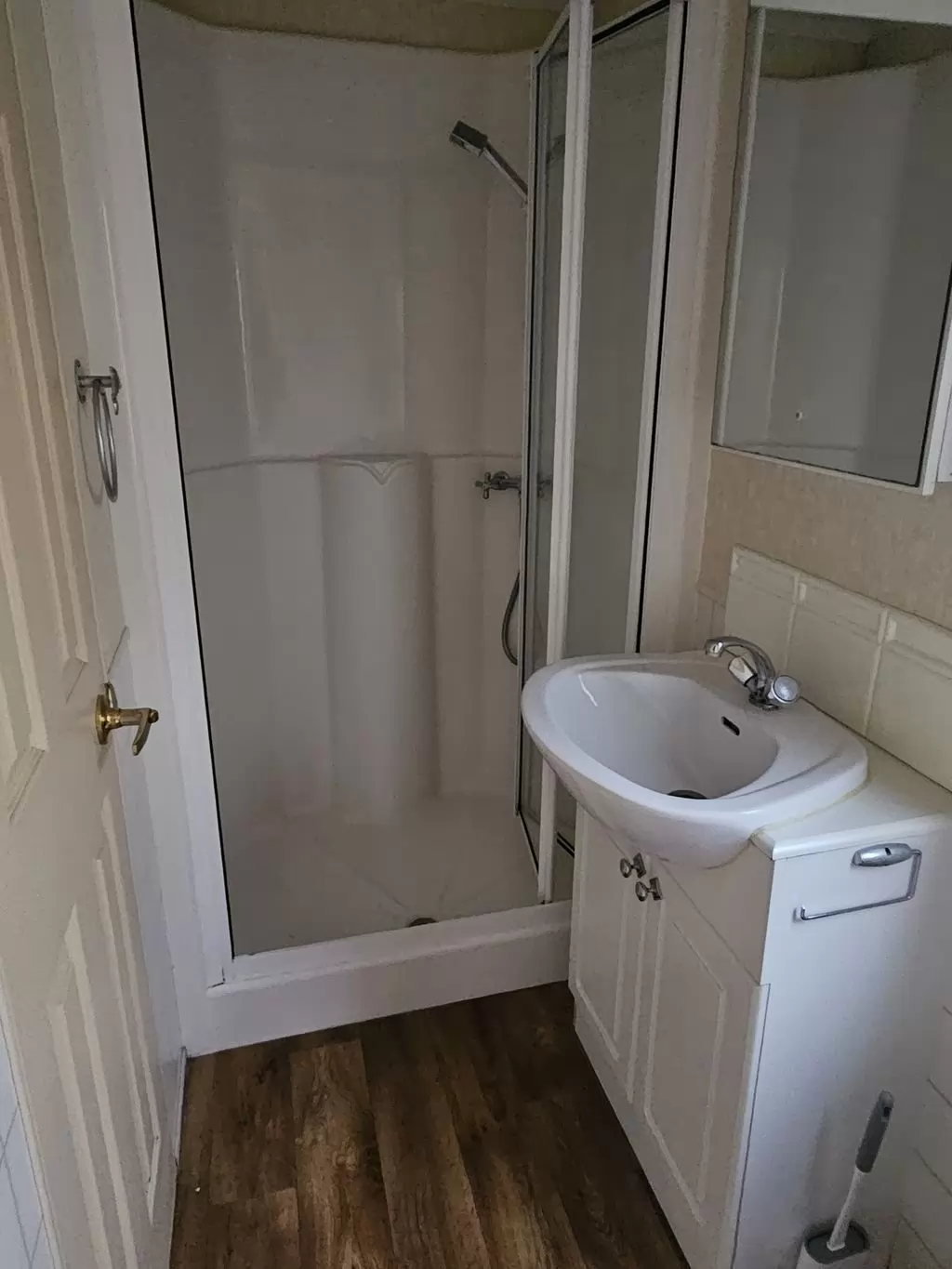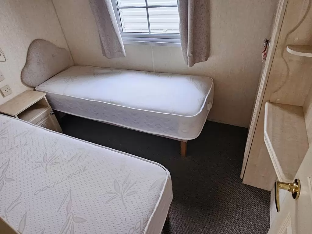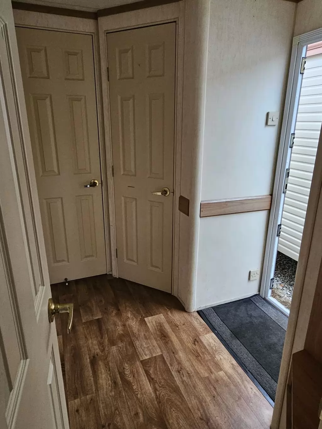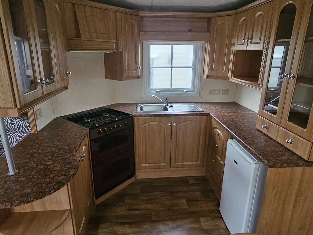 Extra breites, wunderschönes, sauberes und komplett ausgestattetes Mobilheim (11 x 3,7 m) mit zwei Eingängen, Satteldach, doppelten (isolierten) Fenstern und Türen (Dämmung). Wohnzimmer (Schlafsofa), Essbereich, U-förmige Küche inklusive Geräten, Schlafzimmer (Doppelbett) mit Ankleidezimmer, Schlafzimmer (2 Betten), Badezimmer mit Dusche und WC. Gaskamin und elektrische Heizung in den Räumen, Gaswarmwasserbereitung. Hohe Decken im gesamten Mobilheim!